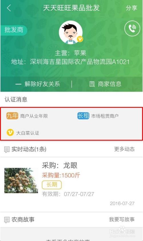 农批人标签:这个功能是指“大白菜+”给批发商提供的认证服务,通过认证的批发商可以把资质优势展示出来,增强信任感