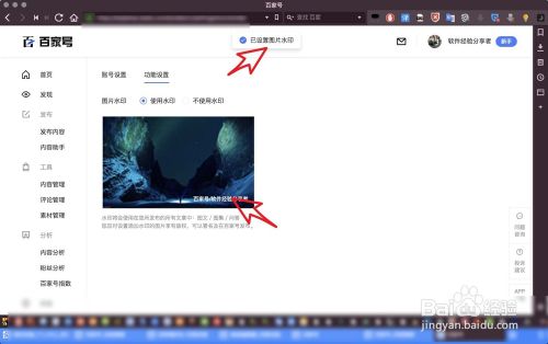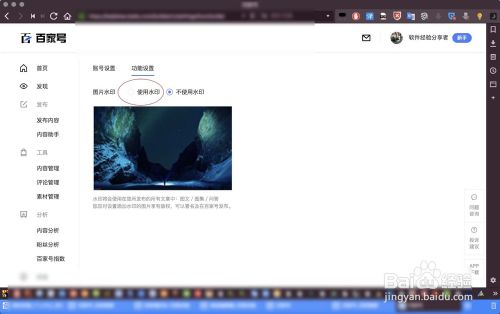 在百家号发布文章的时候,会看到自己发布的文章或者是图集,并没有添加到自己的水印,这个很容易造成人家抄袭后,不知道作者是自己。从而影响自己文章的传播度。那么如何在百家号上面开启这项加入水印的功能呢?