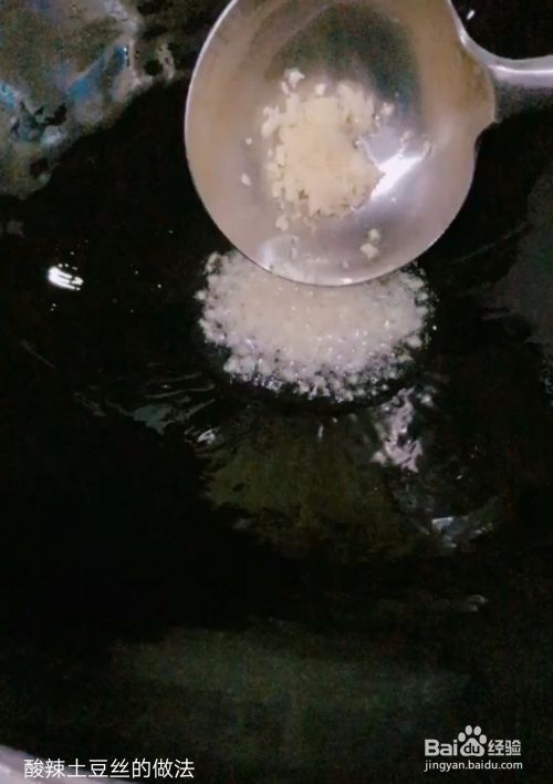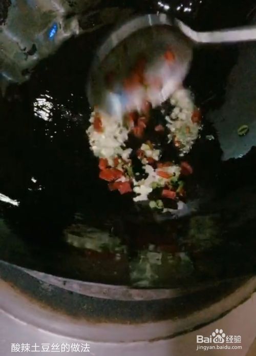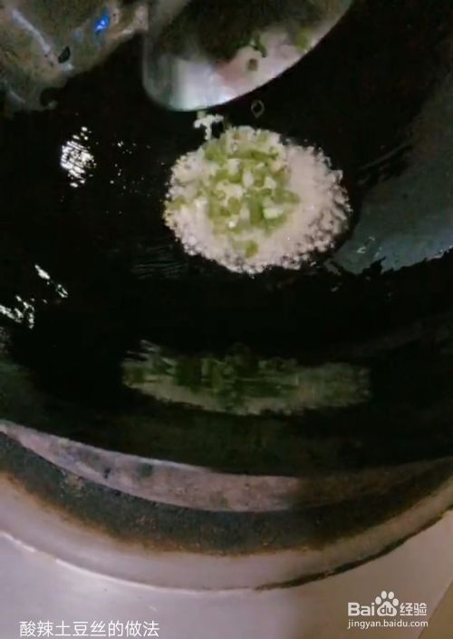 起锅烧油,注意油少许即可。油热后加入姜末、蒜末、葱花爆香,加入土豆丝大火翻炒。