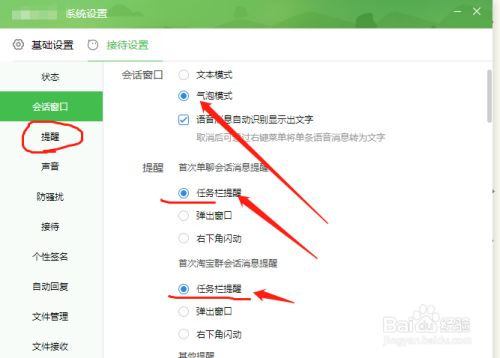 可以设置成气泡模式,提醒可以设置成弹窗、任务栏等