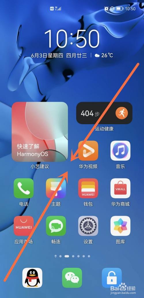 在手机桌面两指捏合进入主屏幕编辑状态,