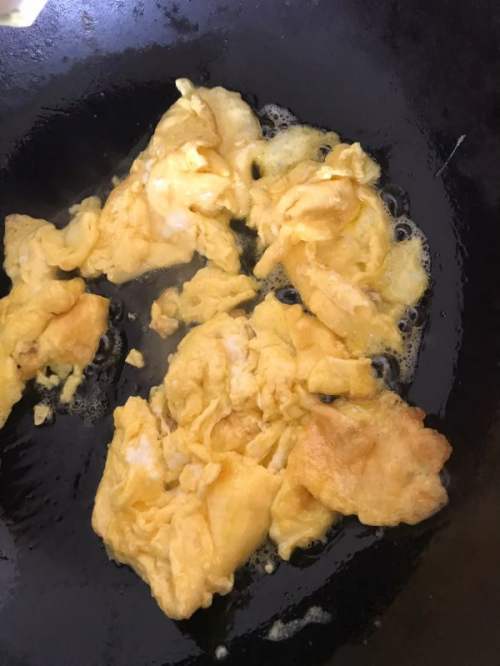 3油热,倒入鸡蛋,微微金黄色盛出备用