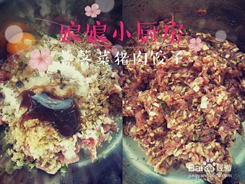 2。把猪肉馅放在盆里,加入姜粉、洋葱粉、盐、味精、料酒、十三香、酱油、蚝油、糖、鸡蛋和食用油,拌匀。