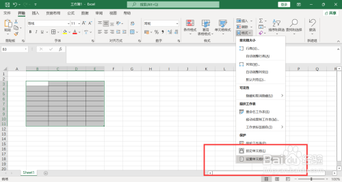 选中表格中单元格,点击菜单栏上“开始-格式”,下拉选择“设置单元格格式”。