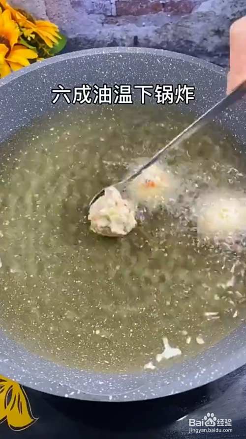 用丸子器压出丸子放入6成油温的油锅里炸至金黄熟透即可