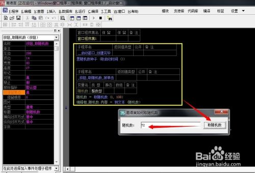 界面已经设置好,接下来,就是编写代码。首先,取随机数之前,应先置随机数种子()然后使用按钮组件来取得1~100的随机数,并显示在编辑框中。如图: