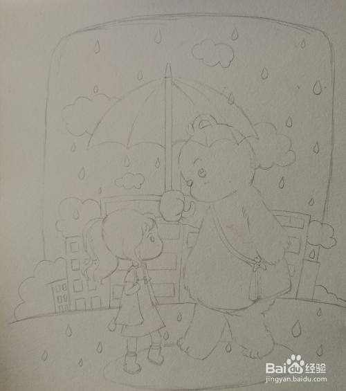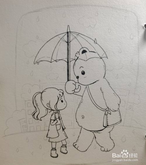 画出大熊举起的小伞。
