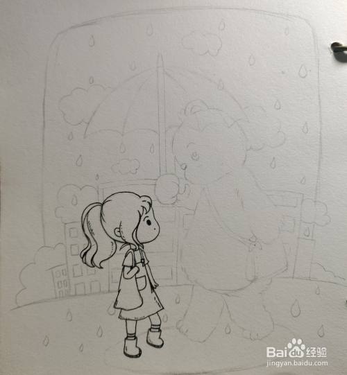 我们继续勾画出雨天的背景和高低错落的楼房。