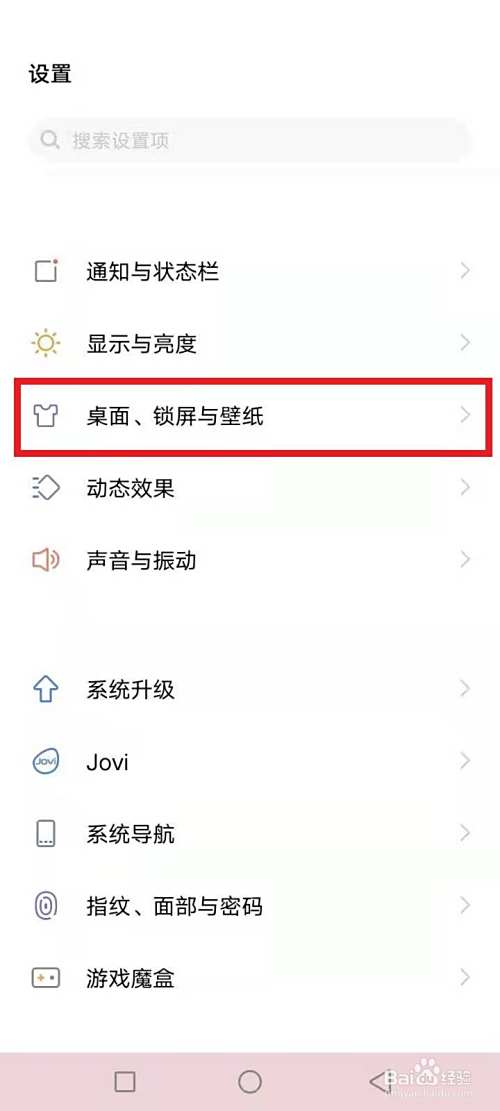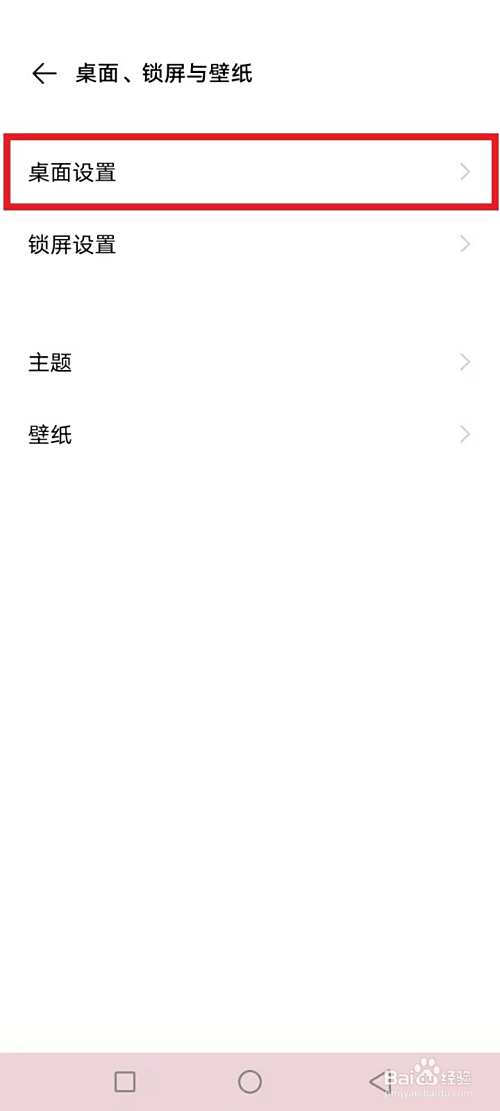手机打开设置,点击桌面,锁屏与壁纸,如图红色文本框: