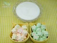 7.放在冰激凌碗中点缀上彩色棉花糖即可。