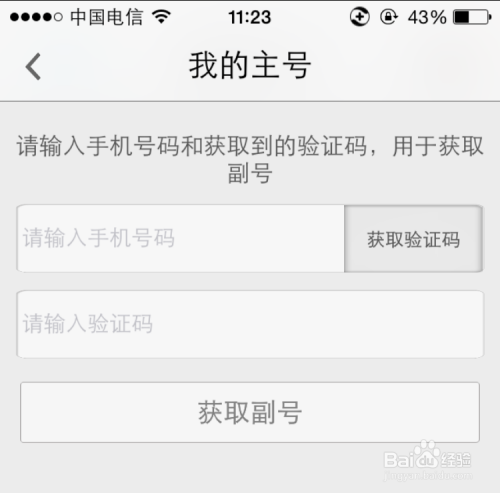 进入申请页后,输入天翼手机号码,获取验证码,输入验证码,点击获取副号