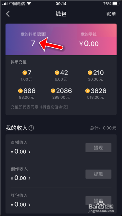 加入主播粉丝团需要消耗1抖币,此处查看余额。