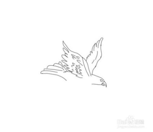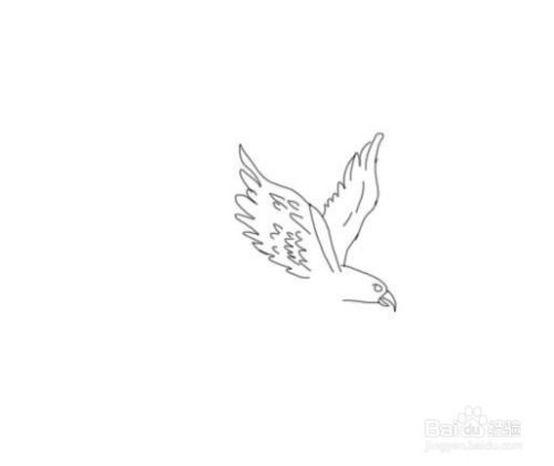 画好老鹰的头部之后,再在头部的基础上画出老鹰的一只翅膀,然后在翅膀上面画出老鹰翅膀上的羽毛,如图所示: