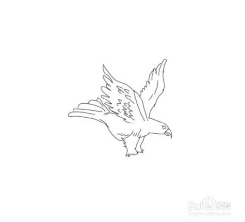 再在头部和尾巴的基础上再画出老鹰的身体,然后在身体的下面再画出老鹰的腿部,如图所示: