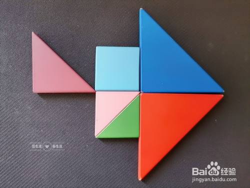 七巧板是一种中国传统的智力玩具,是由七块板组成的。可以拼成各种各样的好玩的图形,比如:动物、数字、字母、建筑物等等,还可以开发儿童的智力。今天让我们一起来拼一条鱼吧~