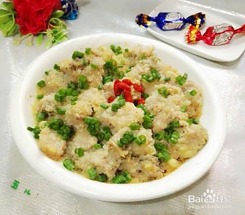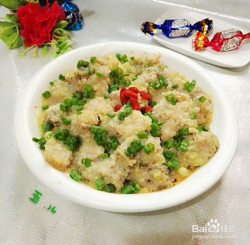 时间到了,不要急着打开锅盖,等里面的水蒸气出完了才打开,小心端出来。撒上葱花,可以上桌开吃了。