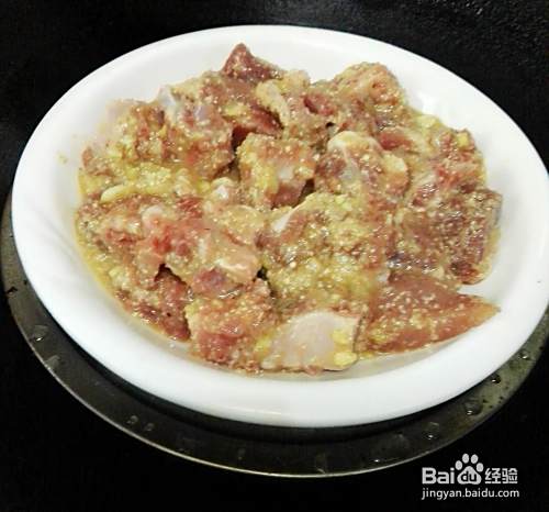把高汤倒入少量在装排骨的碗里,一边搅拌一边倒,不要太稀。