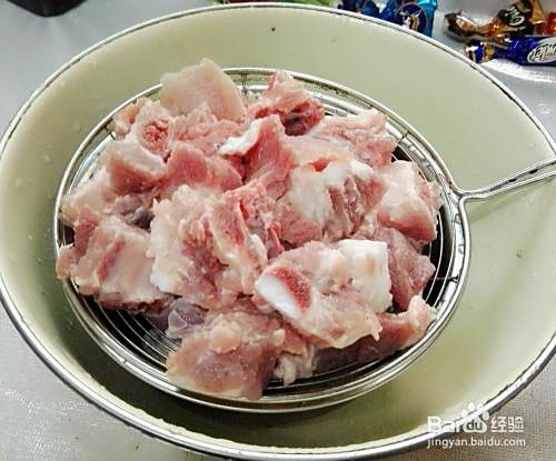 先把排骨剁成小块,再放在清水里泡十分钟,再清洗干净,再控水备用。