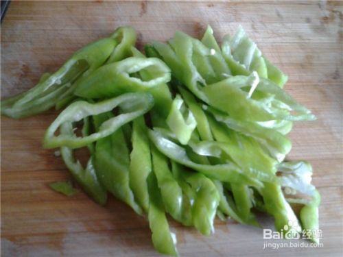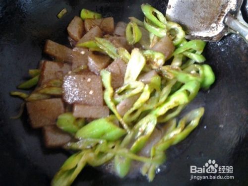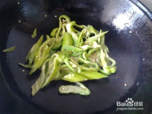 烧热炒锅倒入适量的植物油,烧至5成热时,中火加入切好的青椒快速翻炒几下,这个菜就别放葱花了,因青椒本身就有点辣提味。