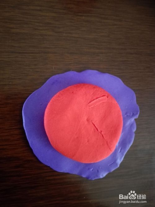 红色也压扁,大小不要超过紫色。放在一个紫色薄片上。