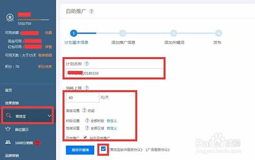 勾选“营效宝软件服务协议”“广告服务协议”,