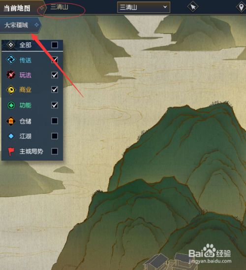 进入地图之后,点击左侧的箭头所指位置,即可查看到该地图中所有的城市,然后选择图中的 仙居原,这里可以看到需要等级达到25级,才能进入该地图。
