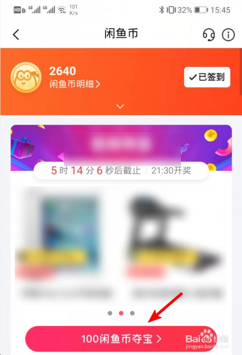 点击进入商品详情界面选择,可以看到夺宝的截止时间及开奖时间。点击闲鱼币夺宝。