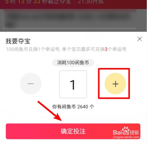 点击后在下方的夺宝界面中,通过加号来使用闲鱼币进行夺宝。