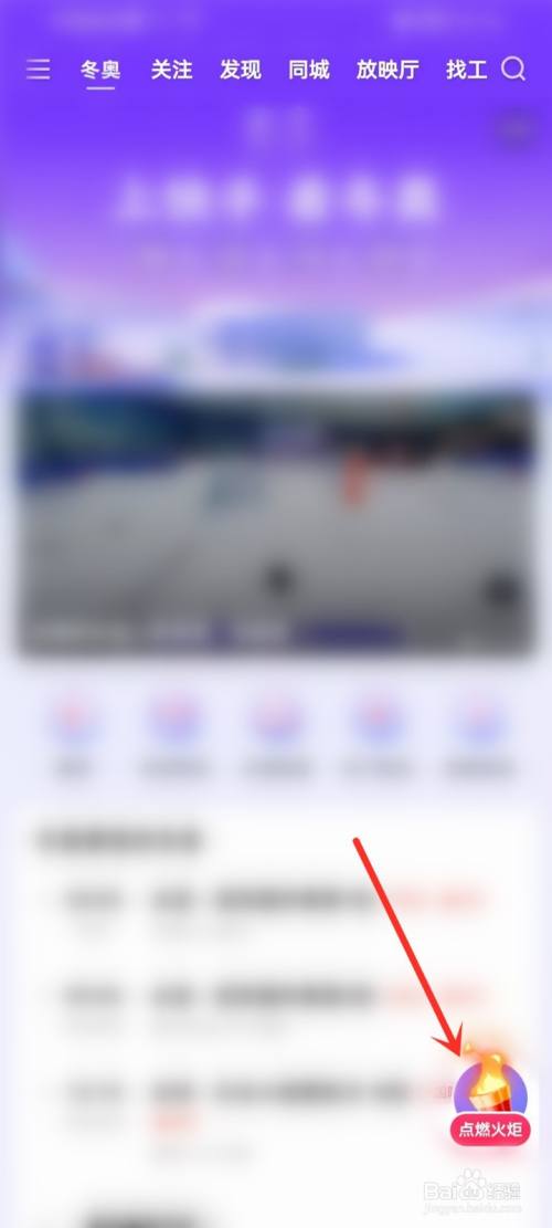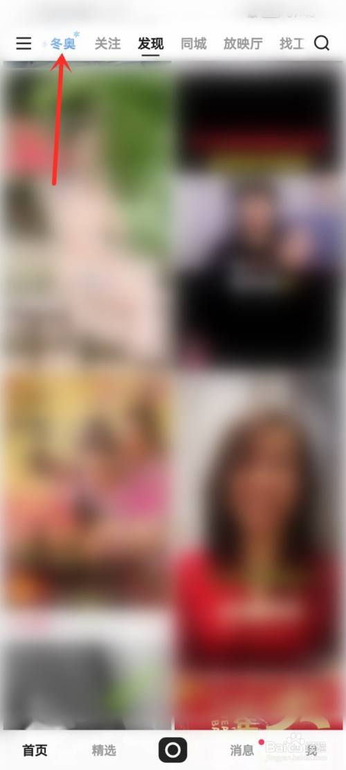 打开快手App首页,点击页面顶部“冬奥”
