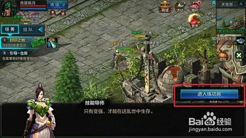 第六步点击练功房之后,人物会自动寻路过去,点击进入练功房,进行技能学习,需要注意的是练功房需要一定等级才能进去,如下图所示: