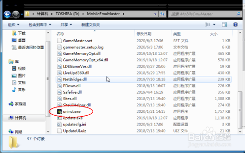 双击进入MobileEmuMaster文件夹,找到“uninst.exe”文件,双击执行