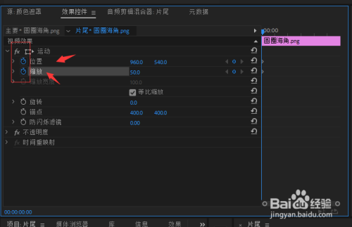 选中位置和缩放左边的(切换动画)的两个图标,选中后,在右边。添加第一帧