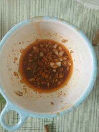 另取一小碗放入所有的材料,还有大蒜末。最后装在西红柿花朵里。