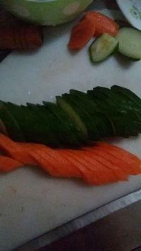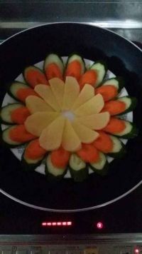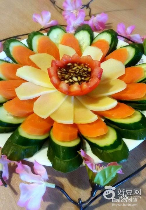 炎炎夏日还在心情烦躁吗?还是没有胃口吃饭吗?那么给餐桌上摆上一盘花开富贵会让您的心情舒展吗?用胡萝卜,黄瓜还有土豆拼出来一盘花开富贵看起来很漂亮吧!吃起来也很美味的。