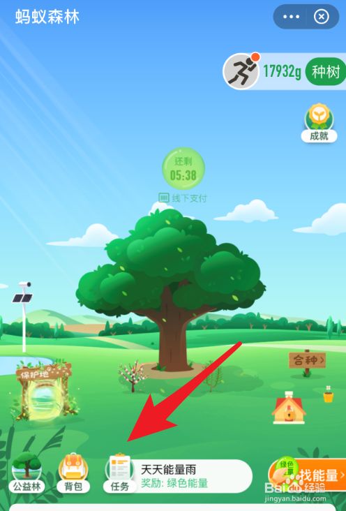 进入到蚂蚁森林页面后,找到“任务”图标,点击它。