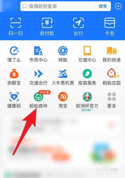 在支付宝页面,点击“蚂蚁森林”入口。