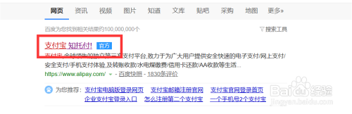 在浏览器搜索支付宝,例如百度,然后点击右边百度一下,或直接键盘回车