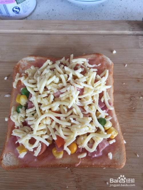 最后上面再撒一层芝士,根据自己喜欢的量来~铺满满的哦,最后撒些黑胡椒粉,也可以再加几条番茄酱,随意组合。