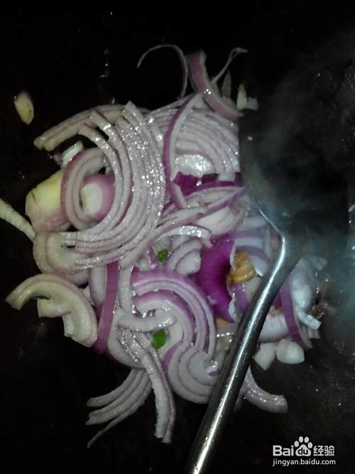 这时把洋葱放入锅中爆炒,来回炒一分钟.