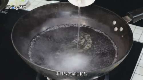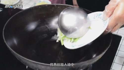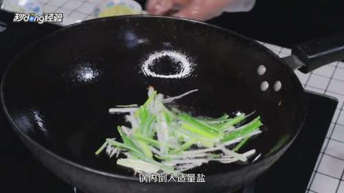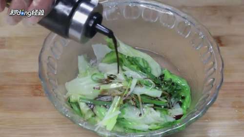 锅内放入适量盐,葱油趁热浇在生菜上。