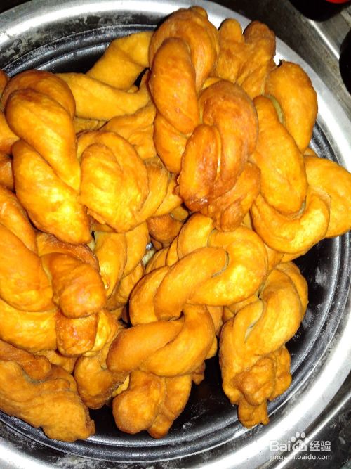 开始,只是把炸熟的麻花放进盘子里,后来发现盘子太小了。只好倒入盆里。