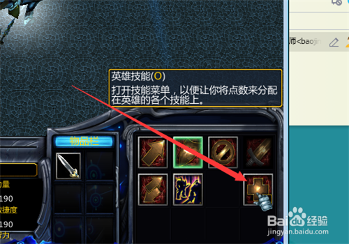 之后就需要去练功房升级、打金币了。再此之前,先来看看技能,点击英雄,在右下角框内,点击红色十字,就可以看到技能列表了。