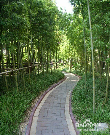 步道,自然线形的人行步道两侧种植竹林和吉祥草地被,