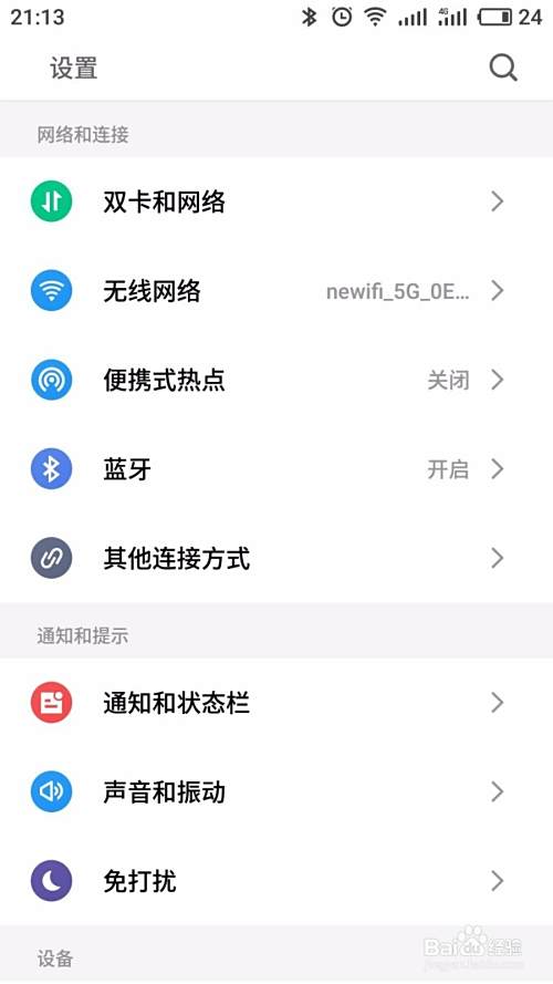 找到并打开设置应用,如下图所示: