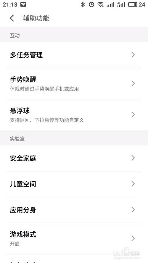 向下滑动找到辅助功能菜单,如下图所示: