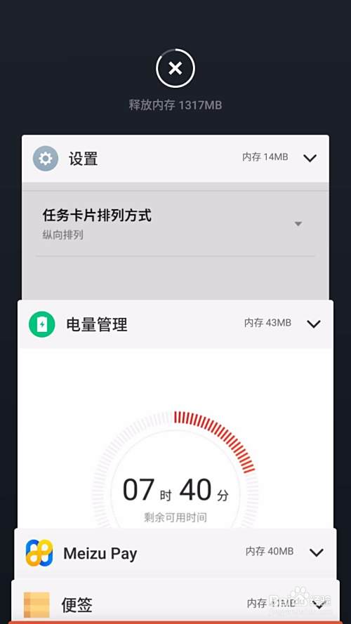 调出多任务后台,此时多任务卡片已经变成纵向排列。