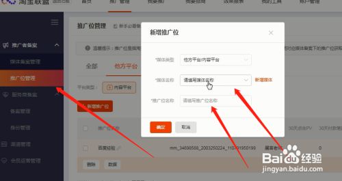 点击“推广位管理”,然后点击“他方平台”和“内容平台”,最后点击“新增推广位”填写相应的信息就可以生成PID了。