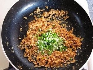 放入豆干、盐、葱花一起翻炒。