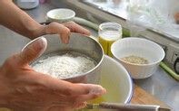 按照生面粉,熟面粉,淀粉2:2:1筛入液体中
