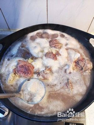倒入凉水,老抽,盐,调好味关火。把锅里的汤倒入压力锅。